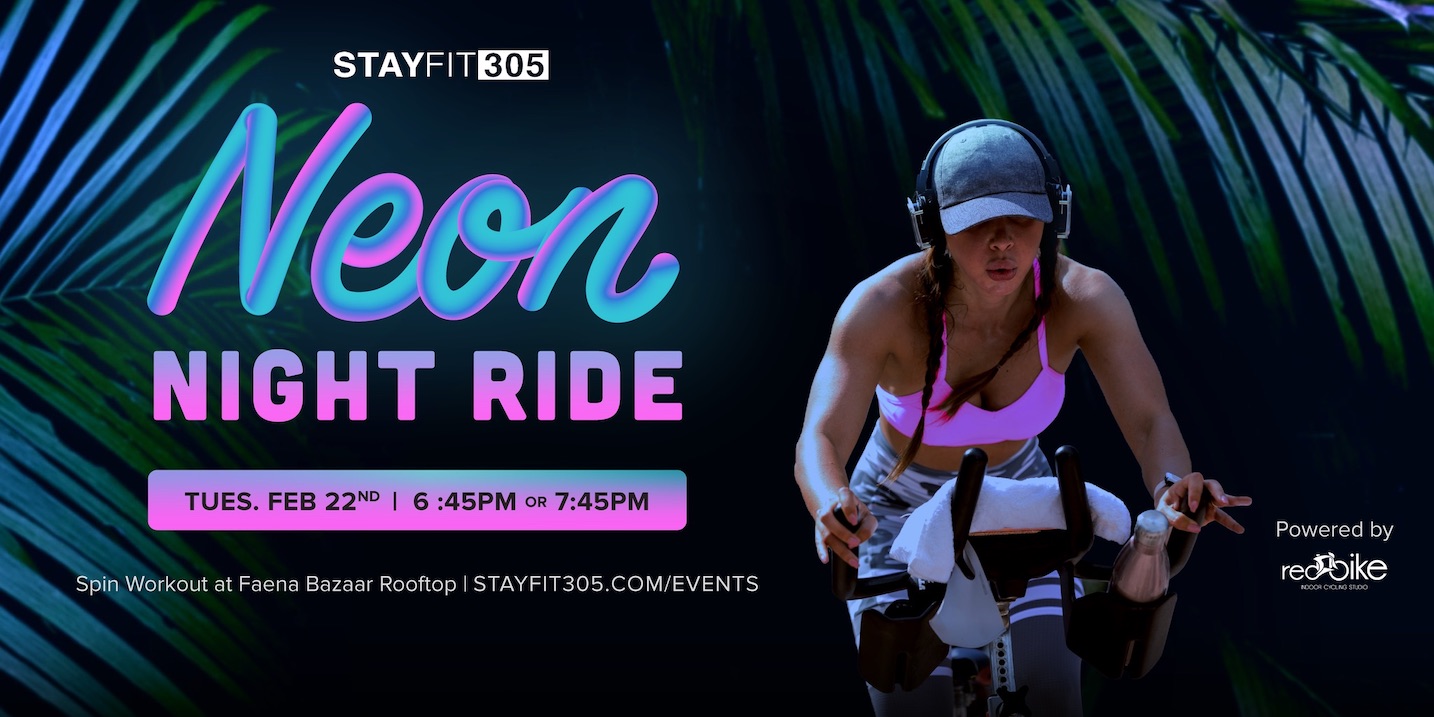 Join STAY FIT 305 and RedBike for an epic, outdoor, Neon Night Ride on Tuesday, February 22nd at 6:45 PM or 7:45 PM for a spin class featuring Miami fitness trainers Dani Vidal and Andreina Baez.